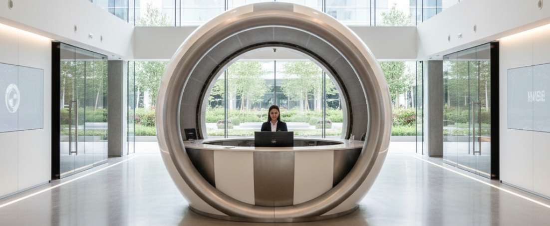 The first moment a client enters your office or showroom determines the fate of the collaboration. Instead of a standard reception counter, a reception desk converted from a massive Boeing 747 engine inlet (Cowling) leaves a strong impact on the visitor. This design choice non-verbally conveys that your brand "does not settle for the ordinary" and is "technology-focused".